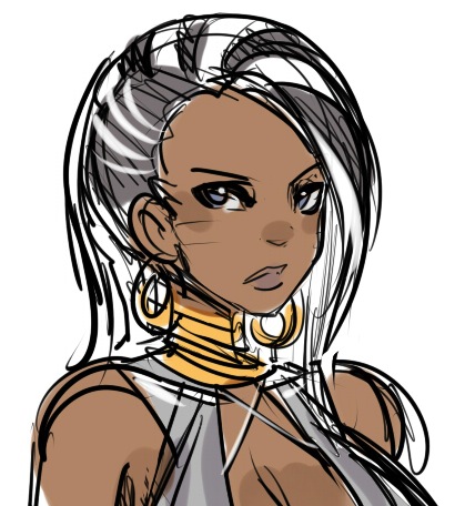 “N-no, not in a rut,” he assured her, blushing slightly as he took notice of the dark skinned woman more closely. The first thing that always caught his attention were her eyes. Turquoise, intelligent and all but oozing with warmth and empathy. They were just a piece of the puzzle, however. Her free-falling, long and silky, gray-with-white striped hair (Or was it white-with-gray stripes? he thought for what had to be the hundredth time since he grew to know her), the exotic, flawless brown skin that reminded him of milk chocolate. Her cute, round nose, her ears, graced with large hoop earrings that gently danced in the morning breeze, along with her golden necklaces, and her mouth. Wide, sensual, warm, beautiful–Mac could stare at her mouth all day when she spoke. He sucked in a breath, nearly overwhelmed at her presence. She simply tilted her head and crossed her arms over the loose-fitting robe that hid her beautiful body from the man.