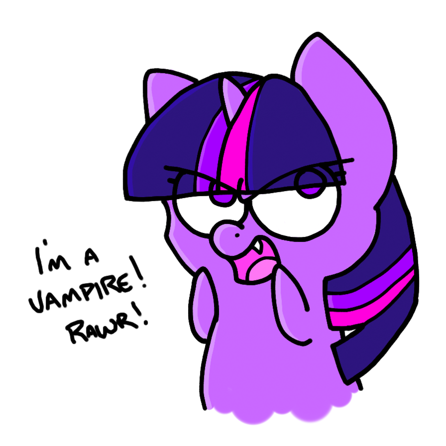 "No, I'm an actual vampire!" Twilight persisted rather bitterly "I got bitten by one while out in the Everfree Forest one night, and now I'm infected by its vampiric plague!"