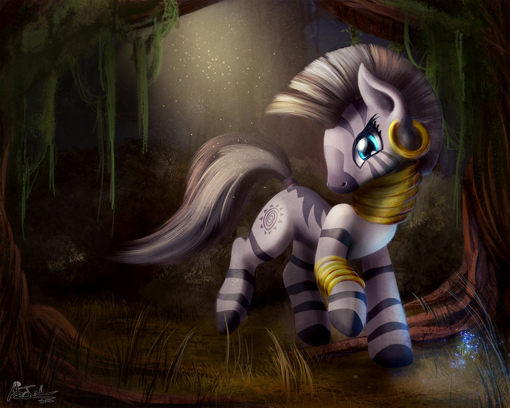 We were in my hut when things, for lack of a better word, escalated. I had just finished telling him another tale of Slender Heart when he cut in,“So you wear those neck rings to honor this beautiful zebra?” the human had asked me this when I had told him the tale the first time, but at that time, I’d been making an antidote and telling him the tale to distract him from running amok through my hut after he had chewed on a particularly potent bulb, which made him bounce around like Pinkie Pie on an expresso bender, and made him just as manically chipper, too. I nodded my head my hoof brushing against my neck rings.
