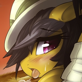 Nodding her head, Daring returned to lapping at the tip of my shaft, while her hooves were at work fondling my balls. Her tongue rolled along the crown of my member in an excruciatingly slow process, over and over again at an even quickening pace. Her intent at this finally became known when a little of my precum squirt into her open mouth.