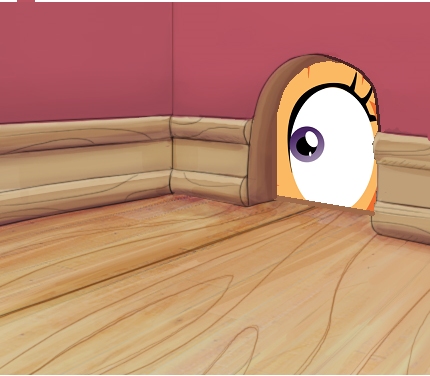 Sweetie looked unsure for a moment but a smile grew across her face and she moved to the hole, pushing the orange pegasus out of the way and pressing her eye to the hole. It was, indeed, in a corner of Carousel Boutique, nestled where the floor and walls met. She could see Rarity and hear her talking about her fabrics to a new pony she didn’t know. She must have been talking about something very important because she seemed to have a lot of information on the fabric and pushed for the customer to understand its value. Sweetie grinned and soaked up the information.