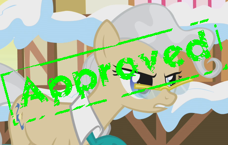 "Request to approve payment to clean stamp marks off of City Hall." She looked at the rubber stamp strapped to her hoof. Something felt off as she pressed it down on the signature line. Perhaps it was the distinct lack of a satisfactory thunk marking her approval.
