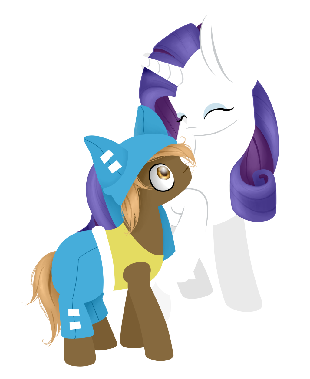 Rarity smiled before gently rubbing her muzzle on top of the colts head. "I am sorry Yugo, but I must make sure you make a good impression with Princess Celestia." She purred as she wiggled a bit of the cloth into his ear, much to his dismay. "Its bad enough that you insist on wearing those old clothes of yours, even if I did fix it up for you." The white unicorn stopped drying the colt off to look at him. "Are you sure you don't want me to fix you something better to wear? I have a few Ideals that wouldn't take me too long to get together."