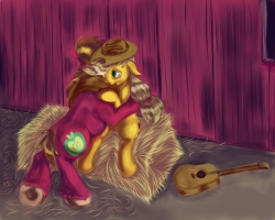 Applejack didn’t play her guitar often. Though she found a kind of peace in the strumming of chords and picked out melodies that she could coax from the polished wood and taut strings, it seemed since her cousin had taught her to play so many summers ago that there was less and less time in each day for frivolous things like guitar playing.