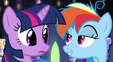 Rainbow laughed softly and curled her forelegs around Twilight’s neck. “Okay.” She tucked her muzzle in close and whispered: “I have a question for you.”
