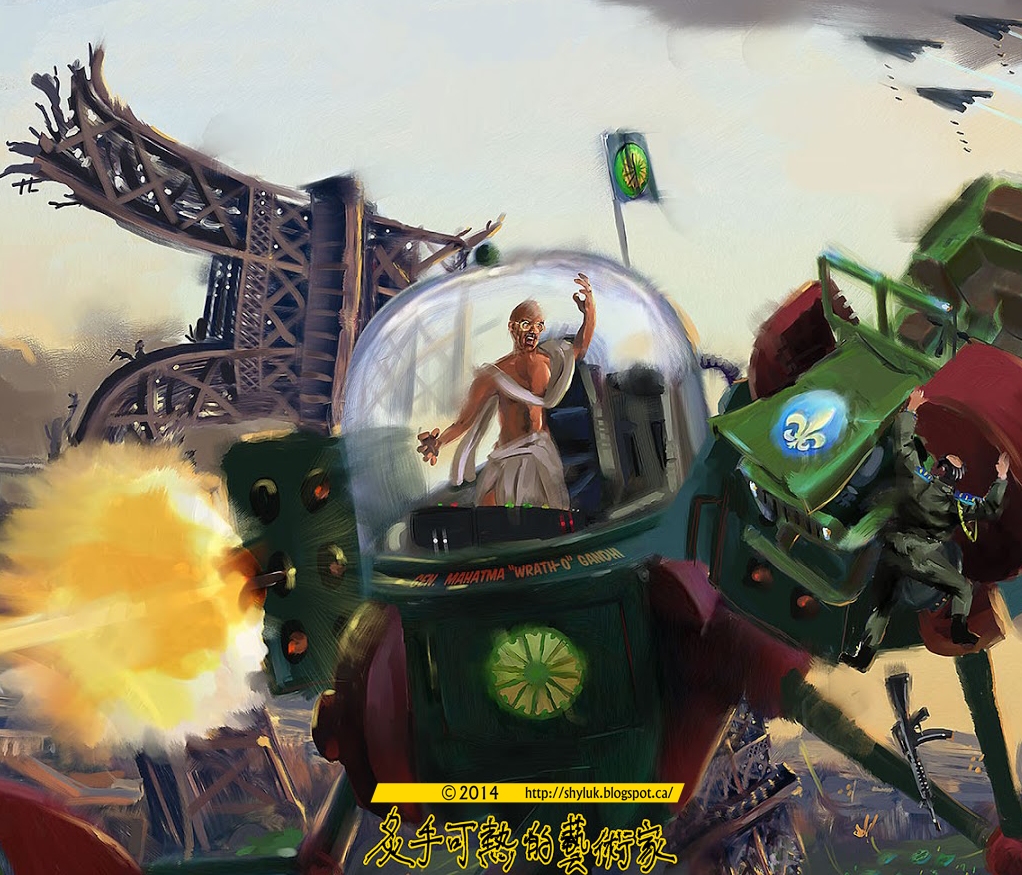 Gandhi nodded solemnly. “Unfortunately, not everyone in my world is as committed to nonviolence as I am.”