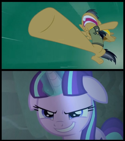 Lightside nodded at her eagerly and scurried across and around the curtain. To think, only four years ago she was a wandering refugee from the Frozen North. Now look at her: master of her own fate. And she needs to be. Fate is never fair, is she? Fate never cares for the victims she tramples under her hooves.