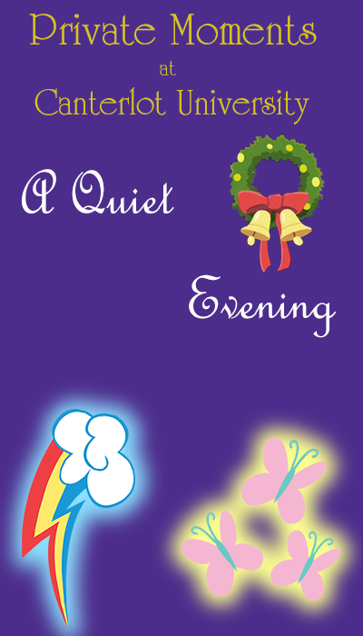 “Yeah, no. Nobody’s open, now. Not tonight, and not within twenty miles.” She tilts her head back and stares up at the ceiling. “And that’s fine. Finals are over, no track meets for another couple months.” She turns to smile at me. “And our friends are gone for the break, too. Twilight, to her home to see her parents with Sunset Shimmer in tow, Pinkie Pie and Applejack are bouncing between their farms for the holiday break, and Rarity is overseas with her parents.” She sighs, and I hear as much as feel the tension flow out of her with it. “It’s just us on campus. Nobody to come over, nobody’s gonna call and ask us to do something last minute. It’s our night.”