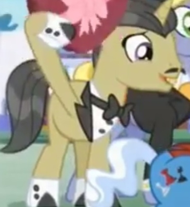 A cloaked stallion bumped into Diamond Tiara, knocking her onto the ground. "Oh! My apologies, young filly. Mwuhahahah…"