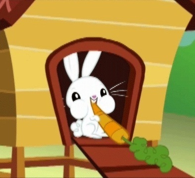Thankfully for Fluttershy’s kitchen, his head did not explode. The bunny was glaring back at her, immune to her death glare, and he quickly pointed to something next to him. It was a bunch of carrots, one of them clearly cut at the tip.