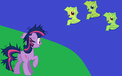 "Pipe down both of you." The teal-eyed creature interjected as it swam between the two, "I've got a much simpler way to figure this out." Then turning to Twilight gave a shout, "Hey, you! Unicorn. So why exactly is our siren song not working on you?"