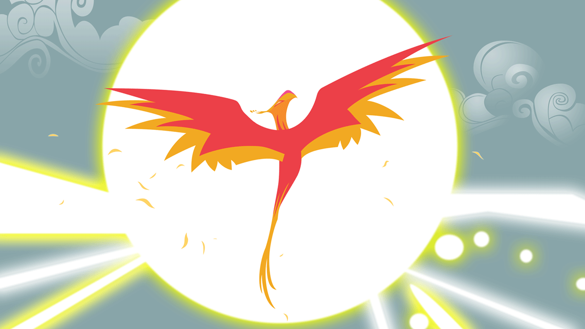With a loud screech the phoenix flew up from the hole and hovered above the ruined building. It was once again bigger than before, and now almost all completely red save for some of its primary feathers, its tail and most of its face. It flapped its wings once and became engulf in a orb of light. It was like a miniature sun had just risen above Ponyville. Beams of the golden light began to shot outward at random, and everything those beams touched suddenly caught on fire.