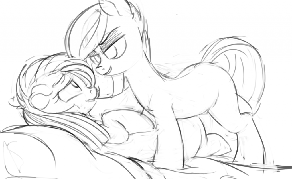 Limestone retracted her hoof and rolled Marble onto her back, spreading her legs and crawling between them. Their lips touched, and Marble had to bring her hooves to her mouth as she yelped louder than she wanted to.