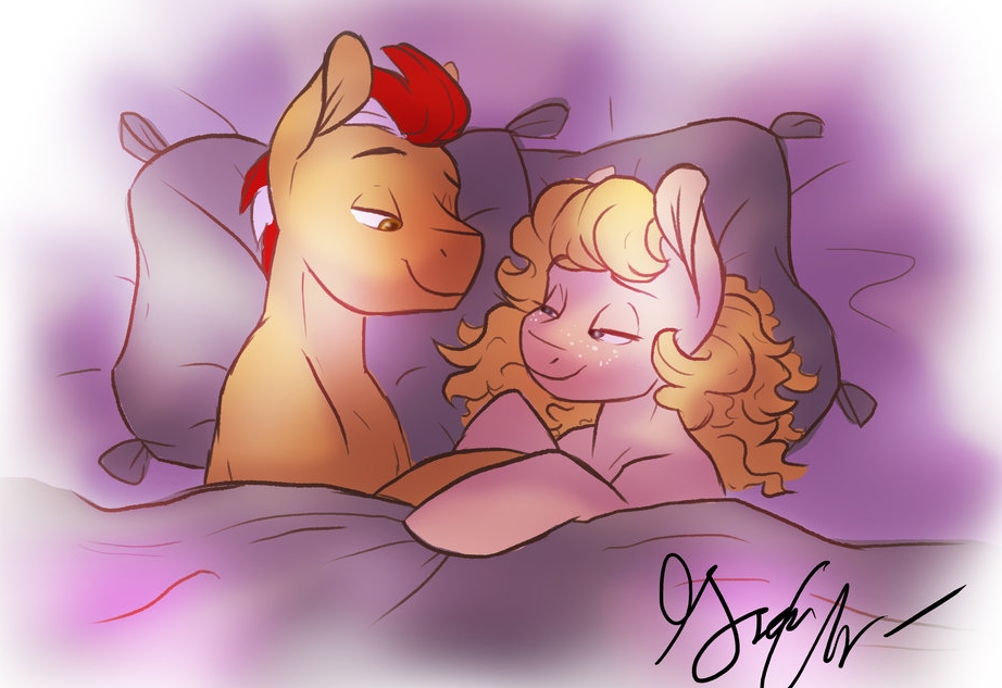 While most of their days are spent being Mom and Dad to their young foal Red Velvet, there is one day out of the year that Sunbeam and Pepper Ridge reserve to be just wife and husband: Hearts and Hooves Day. It's their special day when they can stay in bed, gaze into each other's eyes, and enjoy a kind of romance that only other married couples can understand.