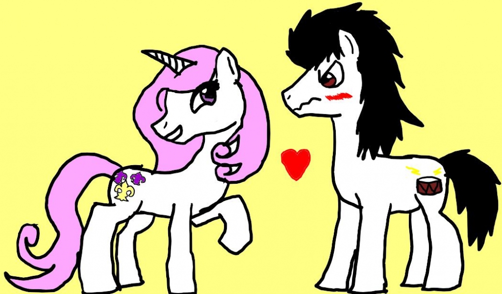 "Well, young prince, you see, It all started about a week after you and Sunset got married. I was walking home to get some much needed beauty rest with my coltfriend, Fancy Pants. I got there late at night, but I saw that he was having dinner with another mare and he even kissed her right on the lips. I was heartbroken at what he just did and apparently when he saw me, he did nothing but give me nothing but a nervous chuckle. I grabbed my stuff and left home after I gave him a slap on the face. I went back to my own home and wouldn't even talk to the locals for days. I then decided to head to a restaurant in order to calm down the growl in my stomach and to get my mind off of that cheating scum. I just minded my own business until I saw Thunder Drum walk in and sat at a different table across from mine. I could tell he was going through some troubles as well. I don't know why, but I offered him a seat next to mine. We just talked and talked until finally...something clicked between us. I offered to let him stay at my house because he told be he had been living in a cardboard box in one of the alleys." Fleur explains. After she finished, she placed her hoof on his own and gave him a warm smiled. "He's made me feel like a whole new mare." Thunder blushed at what she just said, turning away, not even showing a tiny little smirk.