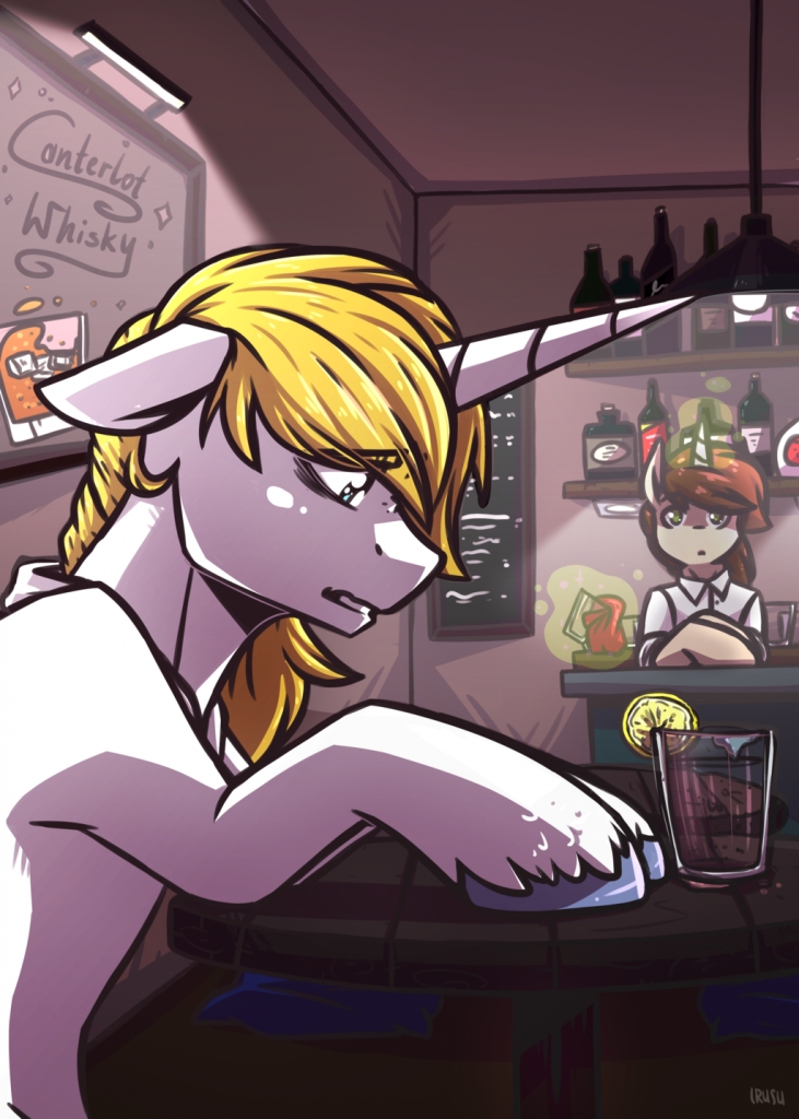Being a bartender means listening to ponies' problems. Gossip, woes, tall tales, secrets—you've heard it all.