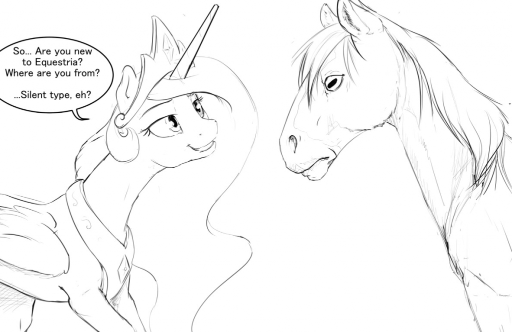The stallion nosed Luna’s side, causing the alicorn to twitch. He then let out a soft nicker. Though Luna wanted nothing more than to shove the stallion away with a sharp reprimand but she contained herself, her years of diplomacy taking over.
