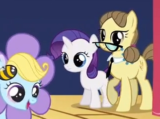 Bored, Rarity's ears flicked. Whispers tickled her hearing. She noticed lips moving on the two fillies before her.
