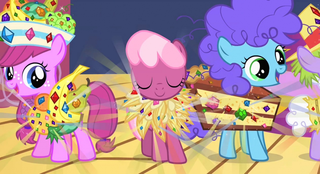 Rarity insisted Cheerilee take it home, collaboration be darned. It was miles better than that pineapple-dandelion-banana-bunch costume, anyway.