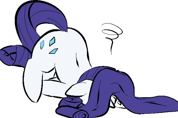 He might have fallen asleep, tired and sweaty and absolutely satisfied, if not for the fact that he felt Rarity give his leg a few taps. He tried ignoring her, letting out an unhappy groan, but the tapping continued. Not able to take it anymore, he opened up his eyes and picked up his head to look at the red-faced, frazzled unicorn.