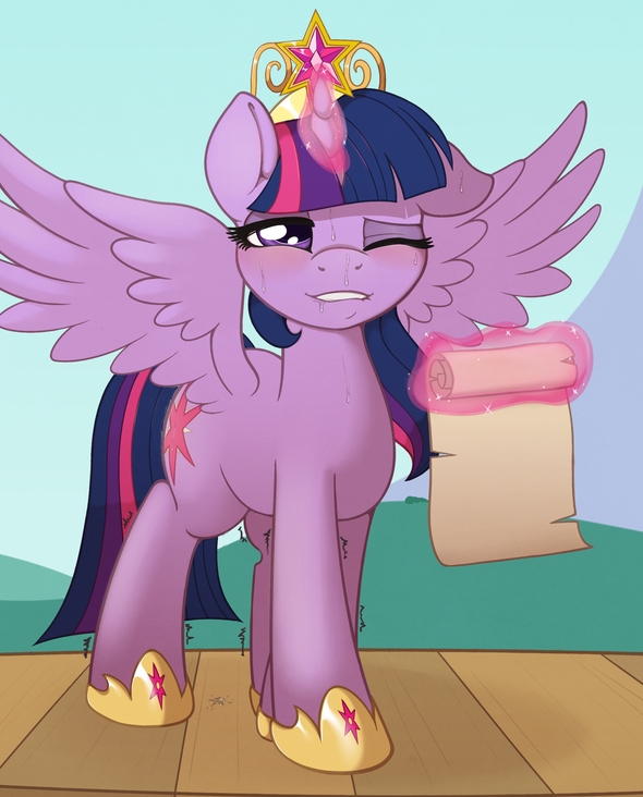 Public speeches are boring, so Twilight livens hers up by turning her coltfriend invisible and letting him rut her senseless.
