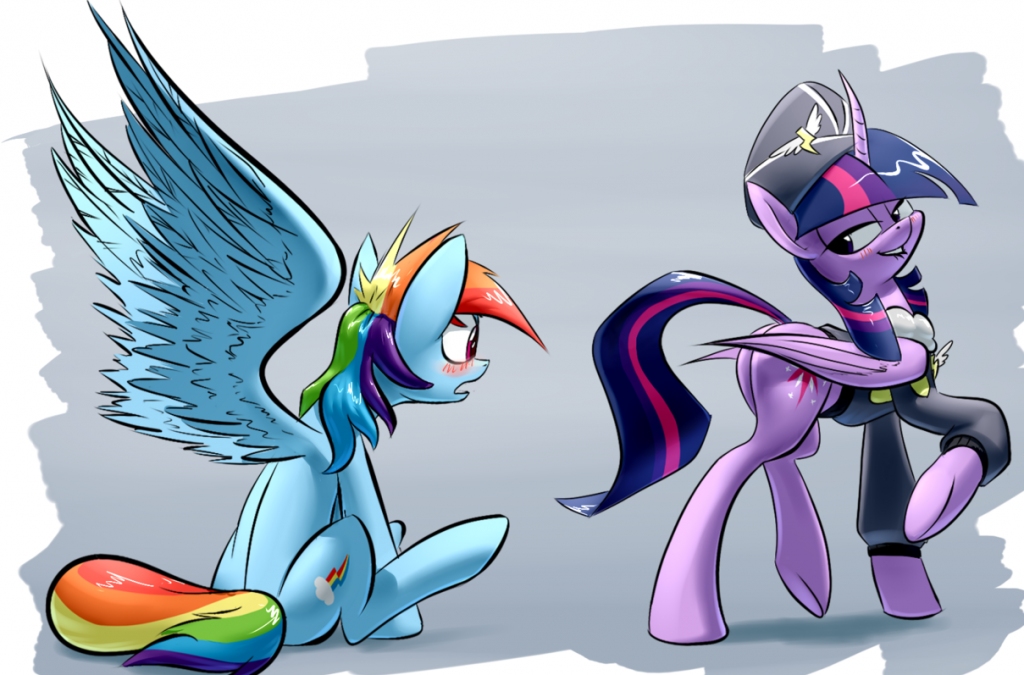 When Twilight turned, it was with a grin so palpable that Rainbow could almost taste its mischief. “To get some rope, of course. Sturdier the better, right? Oh, and I’ll make sure to keep the uniform on, seeing as you like it so much.”