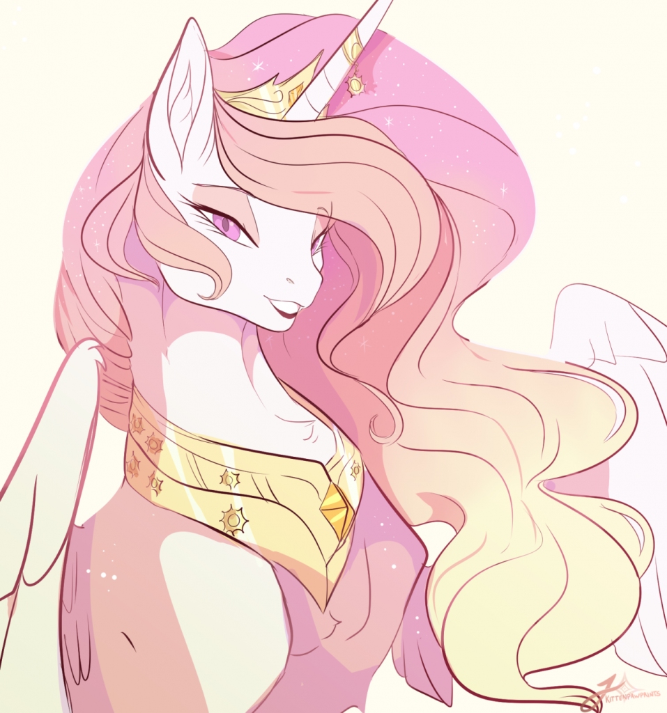Celestia leaned back, a hum escaping her throat as she felt the cock inside of her hilt. She held the position, closing her eyes to properly enjoy the smell of sex and sweat, the feeling of her lover's hands helplessly pawing at her rump, the musky hotness of the room.