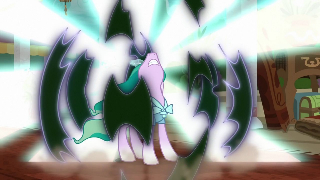 “She’s lying!” Daring pointed squarely at the shimmering, squirming figure. “That pony is not Sable Spirit!”