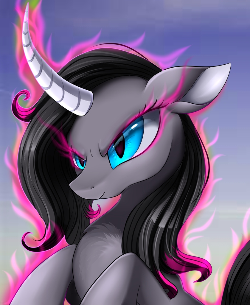 Another sob sounded out. The pathetic little thing was crying, moaning, attempting to arch her back all at once as the last of her climax faded. Oleander would be forgiven for not noticing, however, if only for the feeling currently coursing its way through her own body. It wasn’t the buzz of near-orgasm from her flaring cock, which continued to stretch Twilight, nor was it the pant running through her chest, but the burn in her horn as Twilight’s power began to fill the mare.