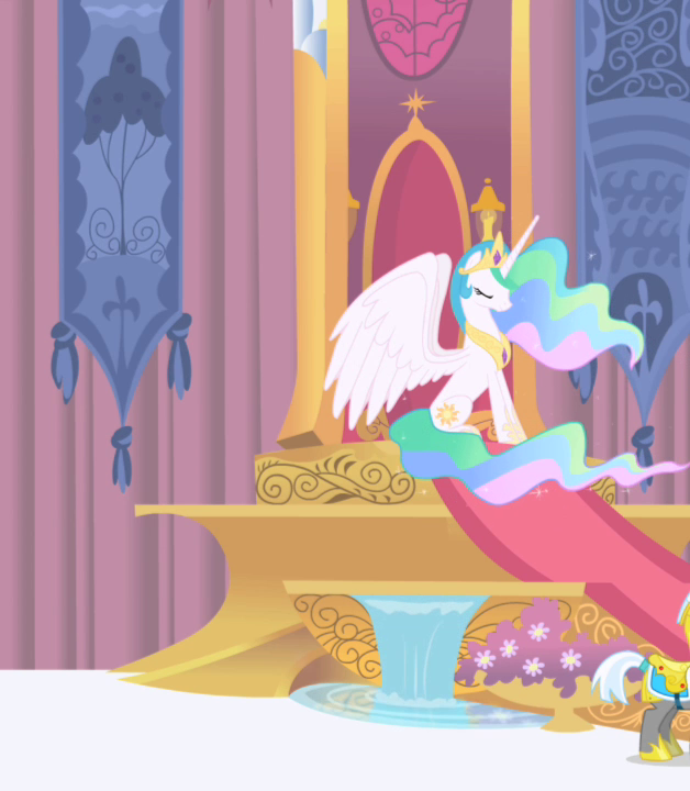The throne of her majesty Princess Celestia is a sacred thing, a powerful thing. It has been with her since Equestria's founding, and will be there for as long as she rules. It is her symbol of power, the seat in which she governs one of the most powerful nations in Equus.