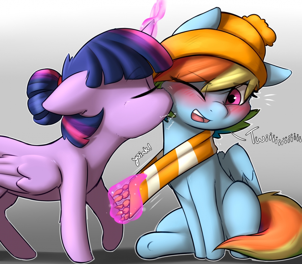 Rainbow was right back on the attack, twisting and writhing beneath Twilight, attempting to nip at her body and catch her off guard, but Twilight was too plz nerf for that, and Rainbow knew she’d have to think outside of the box. She thought the most lewd thoughts imaginable about every human self-insert OC she’d ever had to pretend to like, and her wingboner popped up so immensely, with such virility, it knocked Twilight’s legs straight out from under her, and Rainbow stood, victories, making a little ‘yee!’ sound.