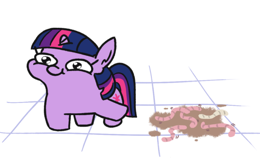 Nightmare blinked, looking down her muzzle at the wiggling worm, as it made its way down to her snout, left a trail of ooze, and then fell down to the ground floor, landing in a slice of cake.