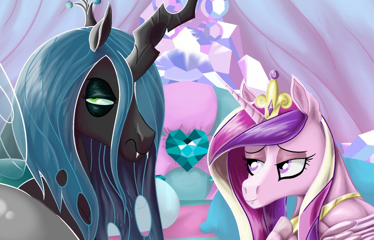 With their rivalry coming to a head, Princess Cadance and Queen Chrysalis decide to settle their dispute once and for all. They're both attractive mares, that much is for certain, although each confesses their derriere dominance over the other. Like two renown champions, they finally pit themselves against one another.