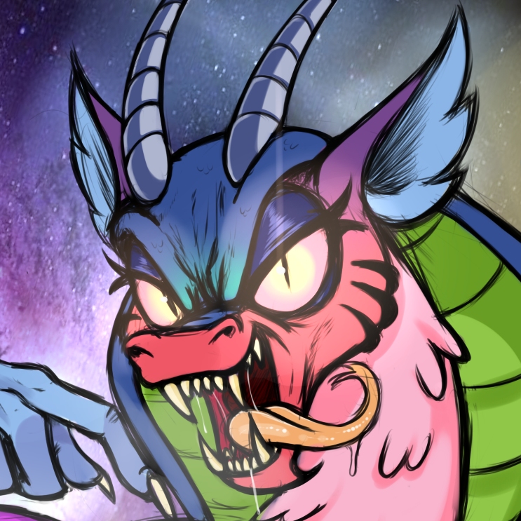 Though Discord couldn’t see it from behind her raised posterior, a rictus grin split her features. The long, muscular tail cradling the base of his skull drew him towards her pillowy cheeks, causing his pupils to shrink to pinpricks. A feeling of licentious dread welled up within his departed stomach, as her stinger tugged at his horn and angled his face upwards.