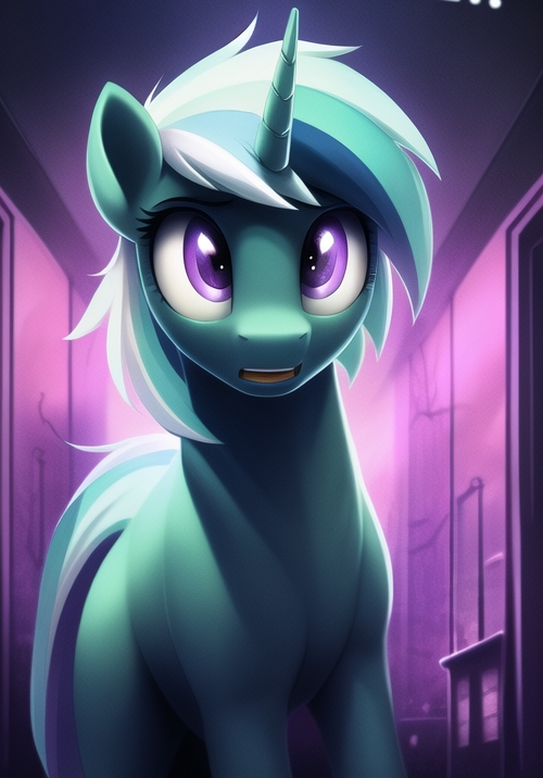 Lyra Heartstrings awoke with a start. Snapping up from her damp, sweat-soaked sheets the unicorn issued a harrowing gasp. A hard lump stuck in her throat as she faced the bitter, oppressive darkness. The pitch of the night strangled her vision and she swallowed painfully.