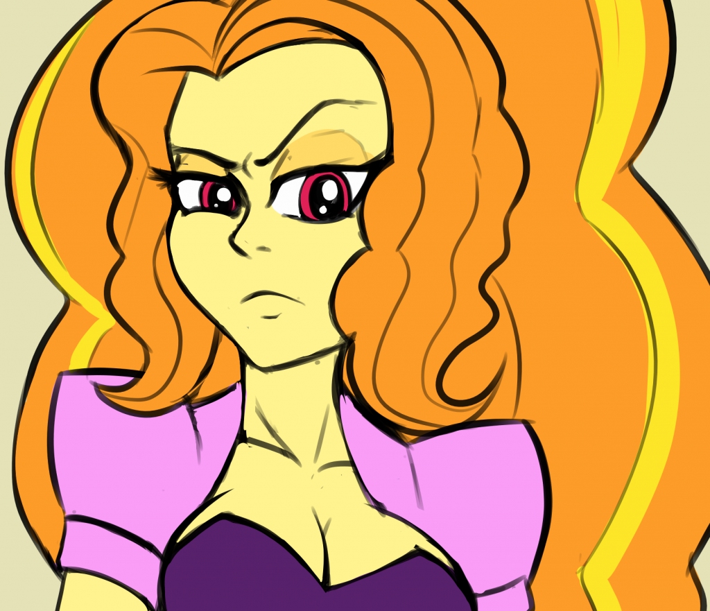 “I’m surprised that you aren’t already eating me out!” Adagio scoffed, and folded her arms across her chest, just underneath a copious bust that bounced with her indignation. She gave an irate huff and tapped her foot, tilting her head to the side as her impatience risked bubbling over. “You’re cute, but if you don’t get to work in the next five seconds I’m going to settle for the second hottest guy at the party to get me off!”