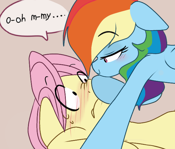 The rainbow maned mare popped her mouth off of Butterscotch, thick rod, a trail of saliva and precum connecting her lips to the tip of the stallions' dick, causing the stallion to look away in embarrassment. "Hehe...what's the matter Scotchy? You said you needed help getting rid of this." She gestured towards the stallion's thick cock that she held within her hoof, lightly stroking down the length of his member to keep it aloft. "I mean...here I am being a good marefriend, helping her poor coltfriend in his time of need and all you can do is complain. For shame Scotchy."