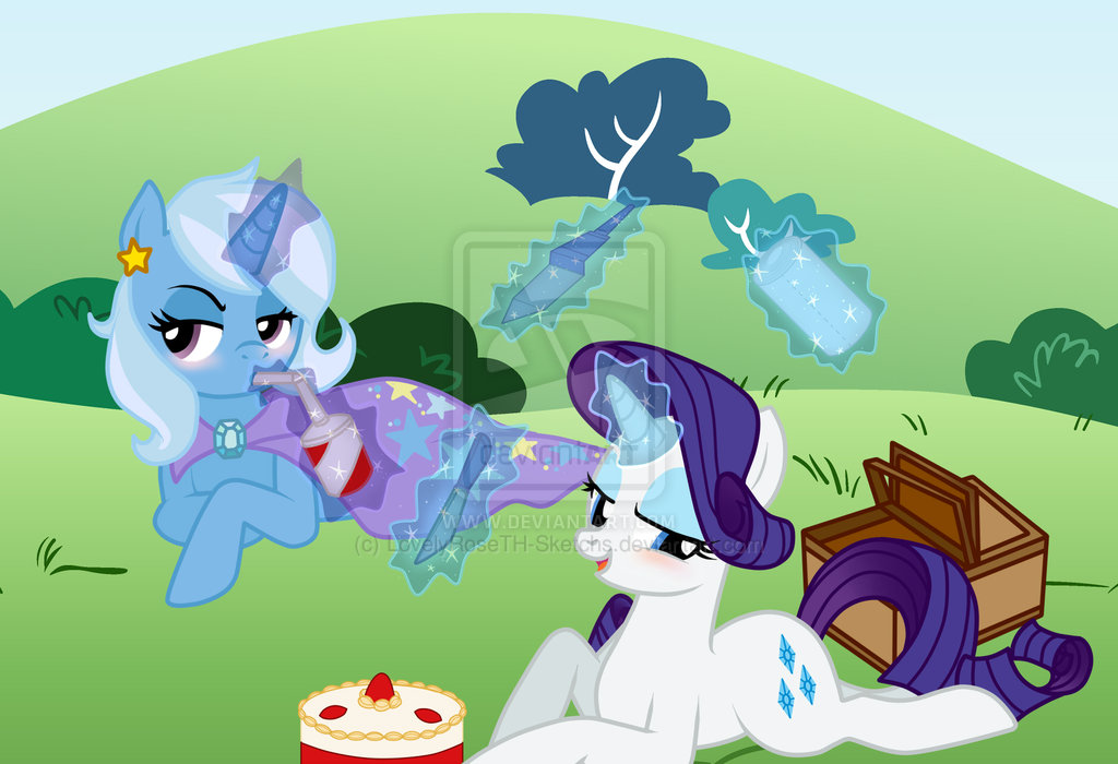 “Oh, T-Trixie!” Rarity cried out, biting her lower lip as she felt herself reach her limit, and climaxed over her hoof, moaning and writhing as she felt her horn filling up with magical energy.