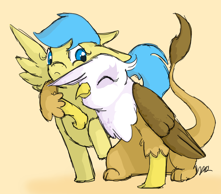 This is my third entry for the Lunaverse Hearts & Hooves Day 2013 special event! The pairing in this fanfic was decided by a random number generator, and I did my best. This fic is 100% non-canon to the Lunaverse and 1000% silly! This story is technically a sequel to Griffin Over the Line by Emeral Bookwise, but knowledge of Lunaverse canon is not needed to enjoy this story, with all the information you need to understand it included in the story.
