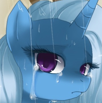 "Trixie apologises, but she does not return your affections." Calm, collected. musn't give Twilight the idea that she's going to bolt. "Trixie will now... Disappea-Waahh!" She attempts to run, but instead of flying off into the darkness and navigating her way through this devious dungeon to freedom in what would have assuredly been an absolutely ingenious way, she slips and falls flat on her face. Her head hits the ground with a resounding 'splat!'.