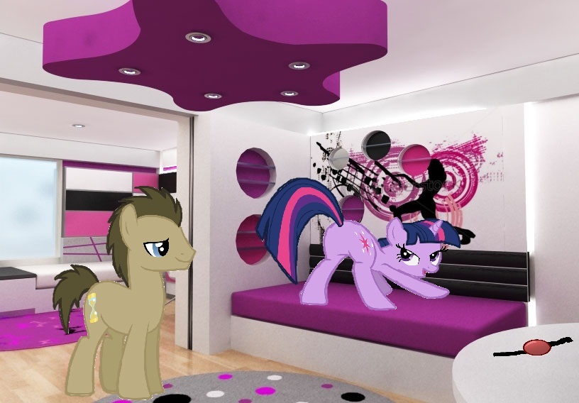 Twilight felt something grab her mane, and the next thing she knew she was laying on her back staring up into the Doctor Whoove’s sexy blue eyes.