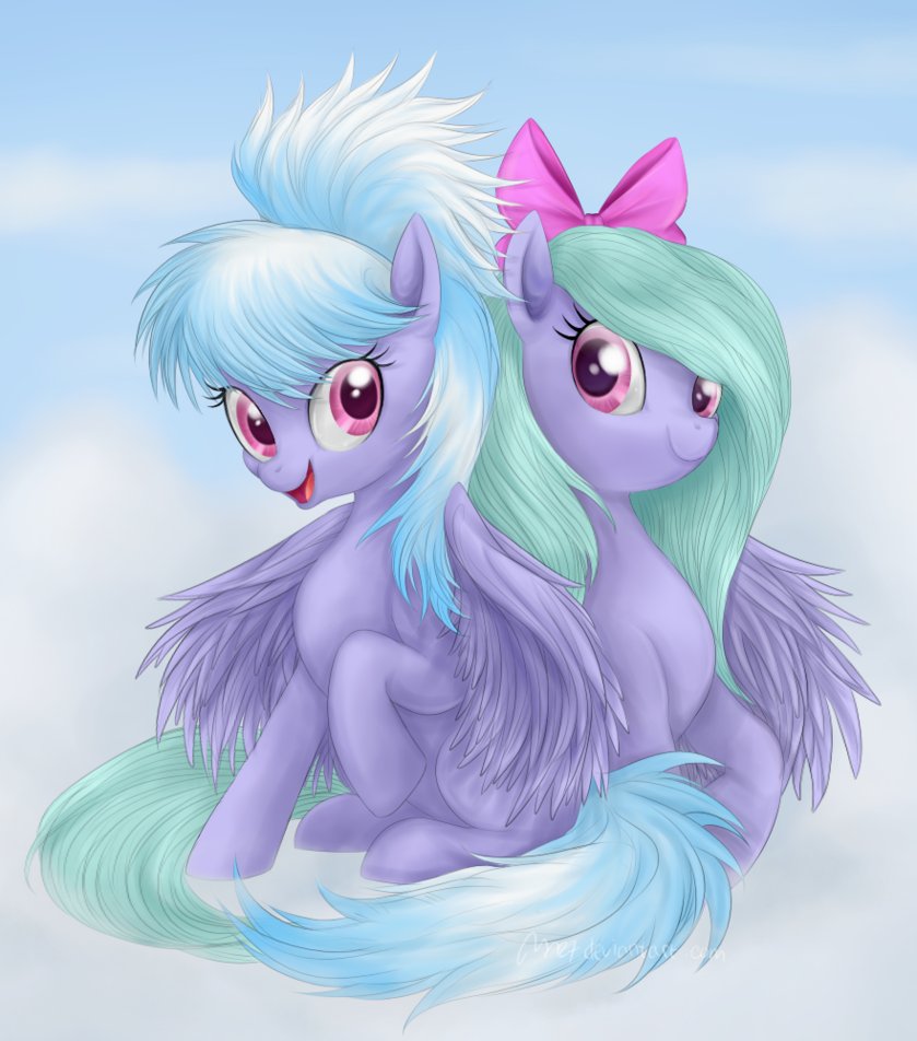 “Aha! Got you, you sly fucker!” Arms closed around Cloudchaser’s neck, and brought her back against cushiony breasts and a somewhat flabby stomach. Looking back, she saw that her sister, Flitter, had ambushed her.