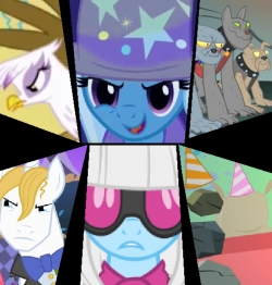 “Then The Great and Powerful Trixie will begin this first meeting of the Legion of Gloom!” the unicorn announced, standing up. “Using my amazing feats of magic, I have located all of those who have been wronged by the inferior Twilight Sparkle and her companions! You have been brought here so that we may enact our glorious revenge!”