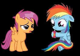 “Nice to meet you, Scootaloo! So, do you wanna hang out?” Dash asked.