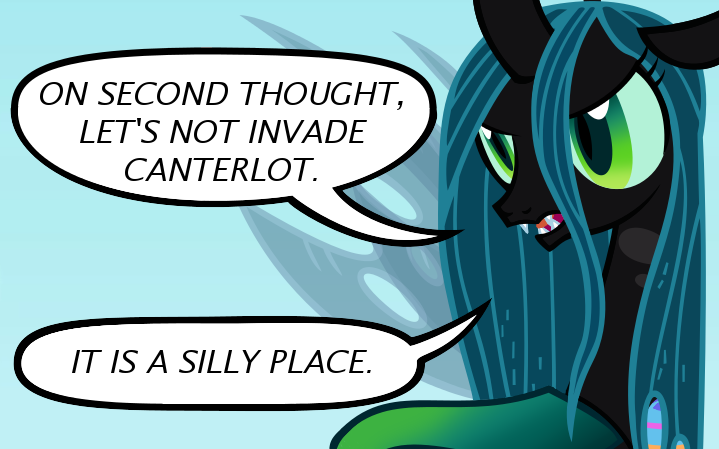 Queen Chrysalis looked disdainfully at the bit of green goo that had fallen from the ceiling onto her gnarled hoof. She'd asked about the leaks, but she was told that the flooring on the upper level just kept forming new cracks, so there was no permanent solution. Everything in the hive was organic, and non-toxic to changelings, but the goo was still annoying when it fell on her.