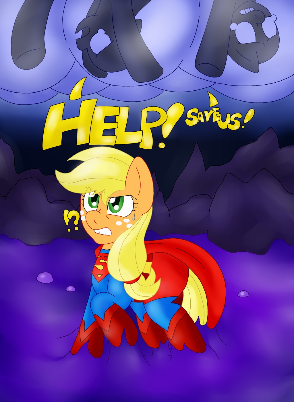 Invulnerability kept Applejack from feeling much pain, but the sense of helplessness hurt so much more. She couldn’t move; the slime seemed to have learned just how much pressure was needed to keep the superpony in check as it poured more of itself inside her in small amounts, just enough to make her tightness meaningless. Pain never came as the goo began to pool inside her unbreakable body, filling up every crevice. Her face became flushed with anger and shame as the slime molded itself into a stallion’s penis that grew longer and thicker than she thought possible for her body to handle, making new sensations of pleasure impossible to deny—a normal mare would be ruined by such a member that was now filling and stretching Supermare.