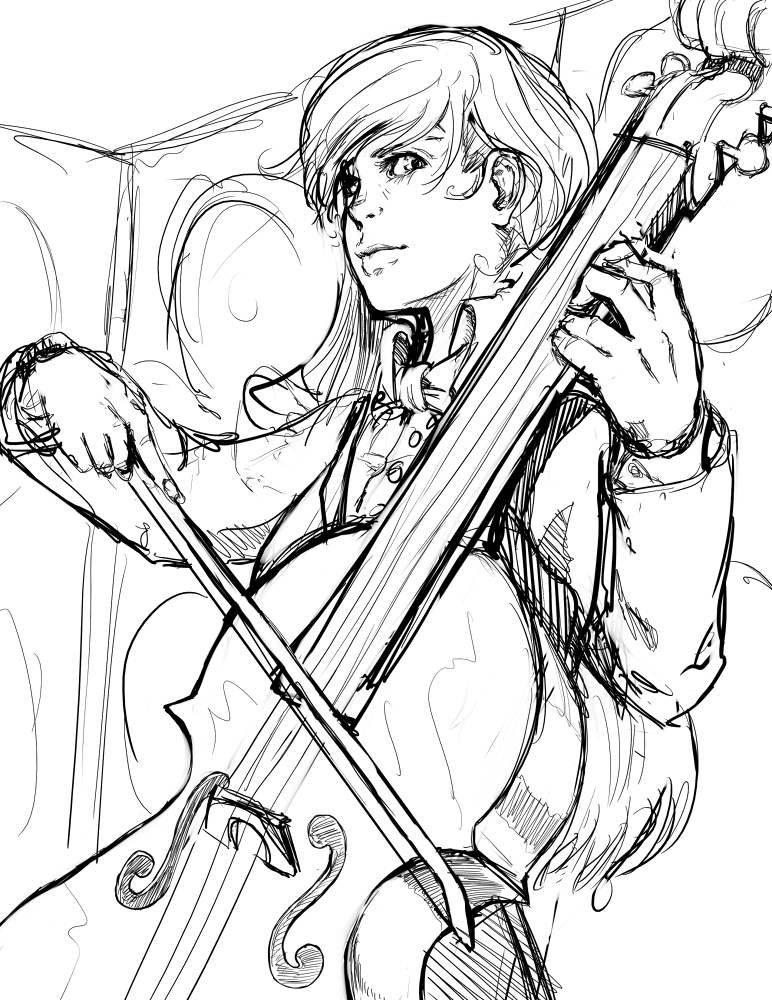 He closes his eyes and hears a single high C played on a cello. She sways to the music, her long hair splayed across her back. She's really something else.