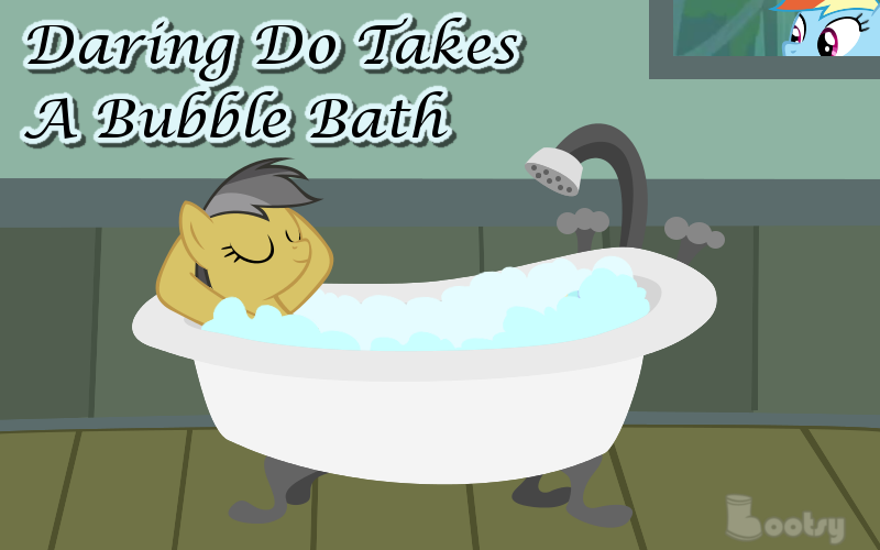Once the tub was about half-filled, she poured in some powder from the box. Bubbles started to form almost immediately, and she reached in to stir up some more. The feeling of the warm water was too much for her to resist any longer, and she climbed into the bathtub. Daring drew in a slow breath, and exhaled an even slower one as the warm water soothed her sore muscles. She stirred her hooves around, coaxing more bubbles from the mixture. After a moment, she shut off the flow of water and leaned back against the far side of the tub.