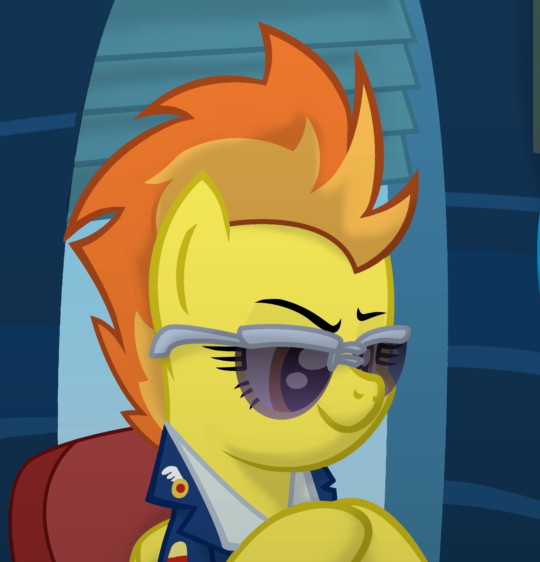 Spitfire felt the sun sneak through the blinds and warm her back. Outside, she could hear the whistles and calls of various trainees working with their squads. Though it was a busy time of the year, it was a time that Spitfire really enjoyed. Every year, there was always a flyer or two that reminded her of herself when she was hoping to become a Wonderbolt. Confident, excited, and optimistic.