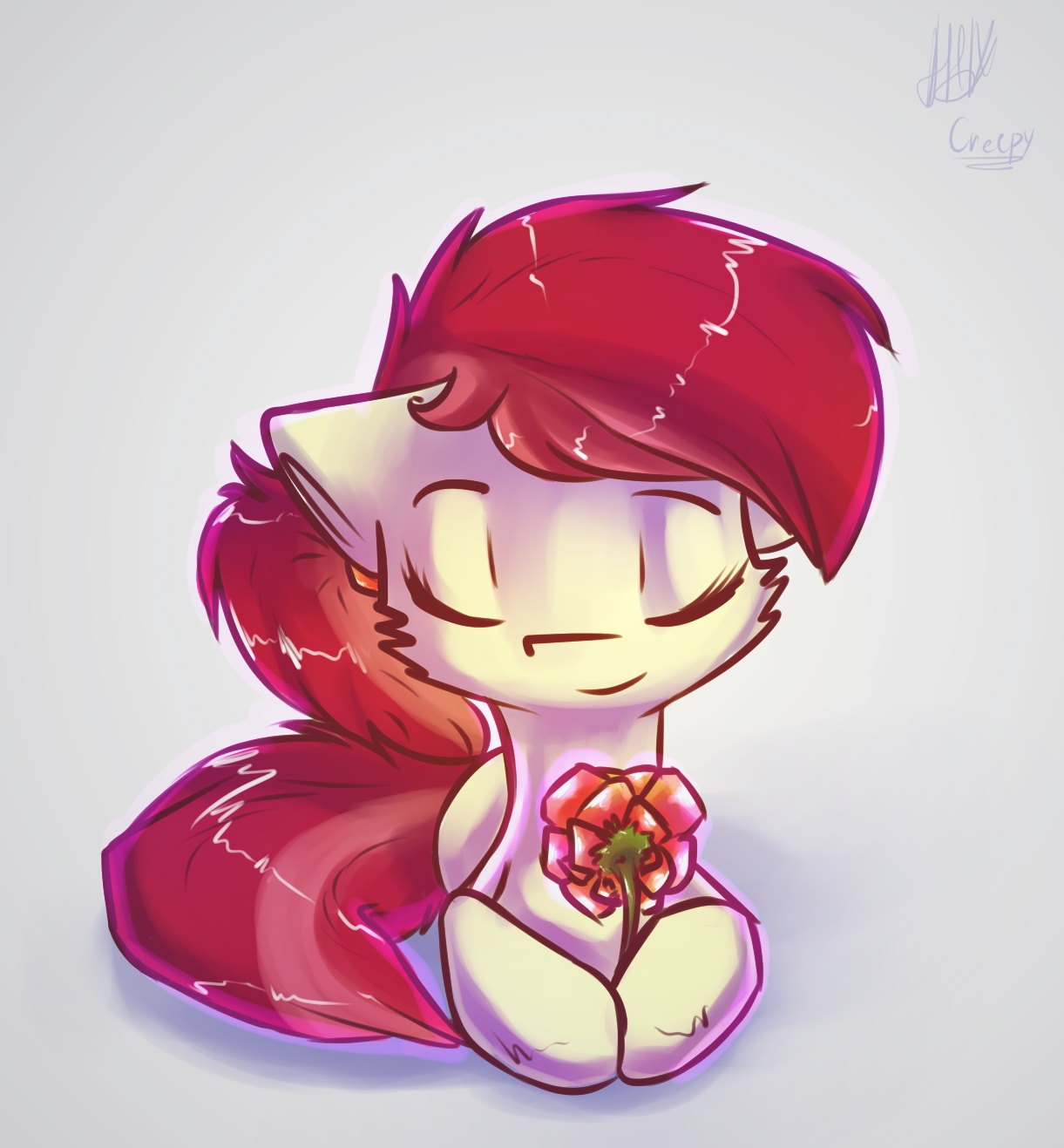 Gently, she reached a hoof in, cradling the mare’s cold cheek. A small smile graced her lips, leaning in and kissing the passed pony on her forehead. Lifting her head up, she took the rose from between her lips, and gently slid it in between the corpse’s hooves.